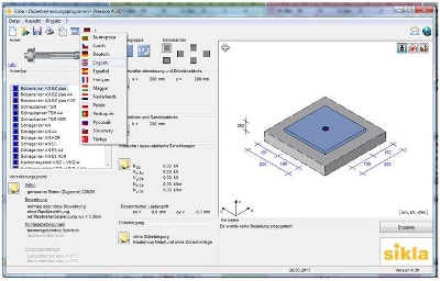 Oprogramowanie to umożliwia dokonanie wyboru odpowiednich kotew jak również wykonanie obliczeń statycznych. Intuicyjy interfejs użytkownika jak również przejrzyście zbudowane maski wspomagają Pąństwa w trakcie doboru odpowiednich kotew. Program umożliwia dokonywanie obliczeń dla mocowań usytuowanych blisko krawędzi jak również dla grup kotew. Obliczenia statyczne odbywają się w oparciu o certyfikaty Sikla oraz w oparciu o europejskie procesy obliczeniowe przyjęte przez ETAG001, załącznik C, ETAG001 część 6.